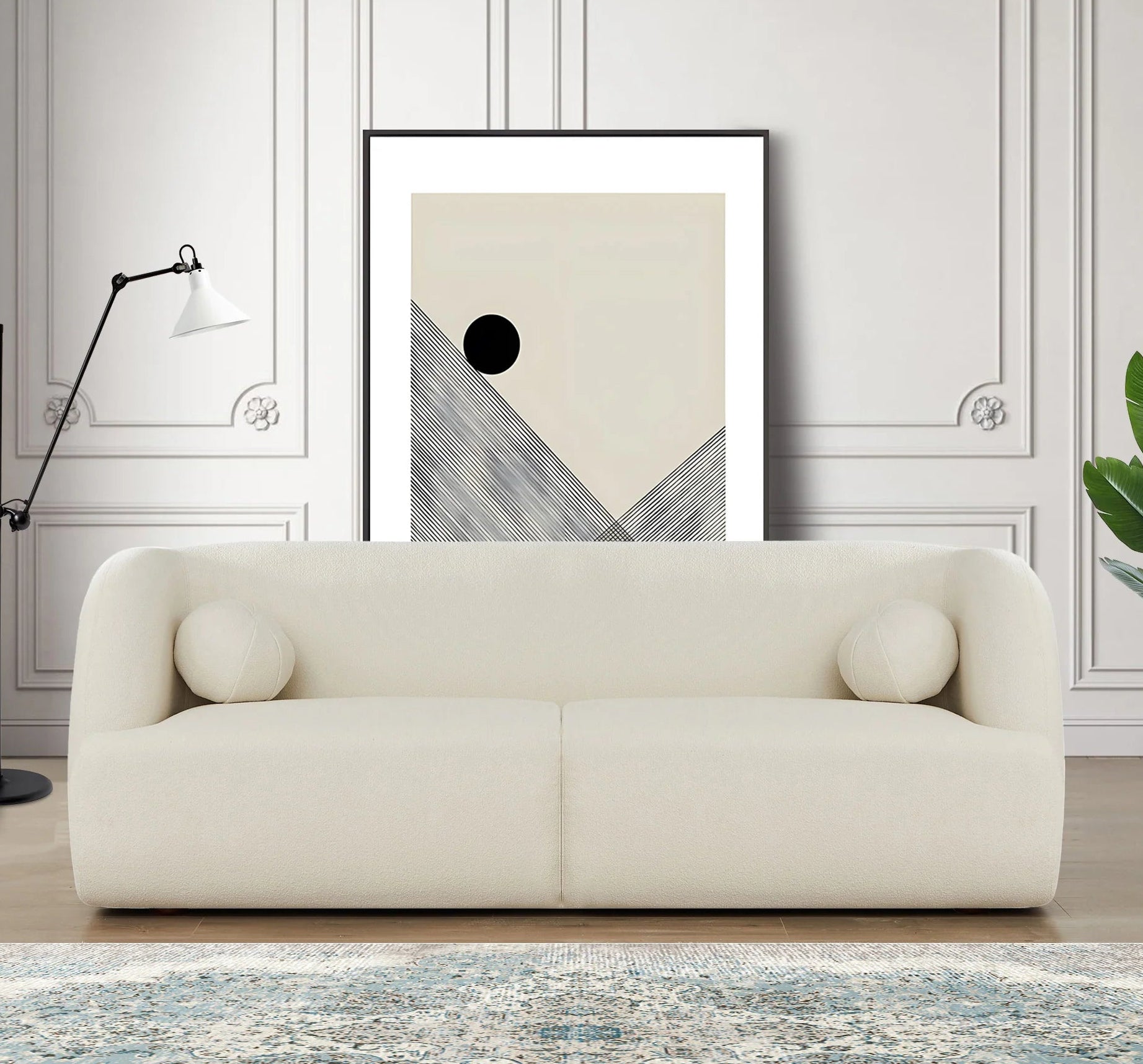 Aurora Table Lamp in Beige and Black. Designed to blend style and functionality, this lamp is minimal it its design aesthetic. Its clean lines and 2 tone color palate, make it a modern and versatile lighting option.