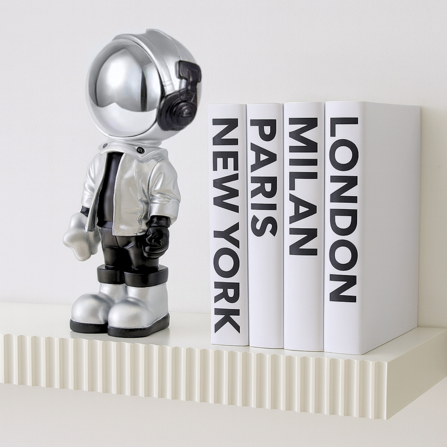 The Astronaut sculpture is a contemporary resin art piece, hand-painted for striking detail and style. A standout focal point for any home or office, it’s available in black/gold or black/silver.