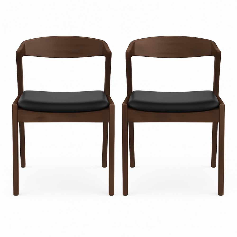 Dakota Solid Wood Black Leather Dining Chair (Set Of 2)