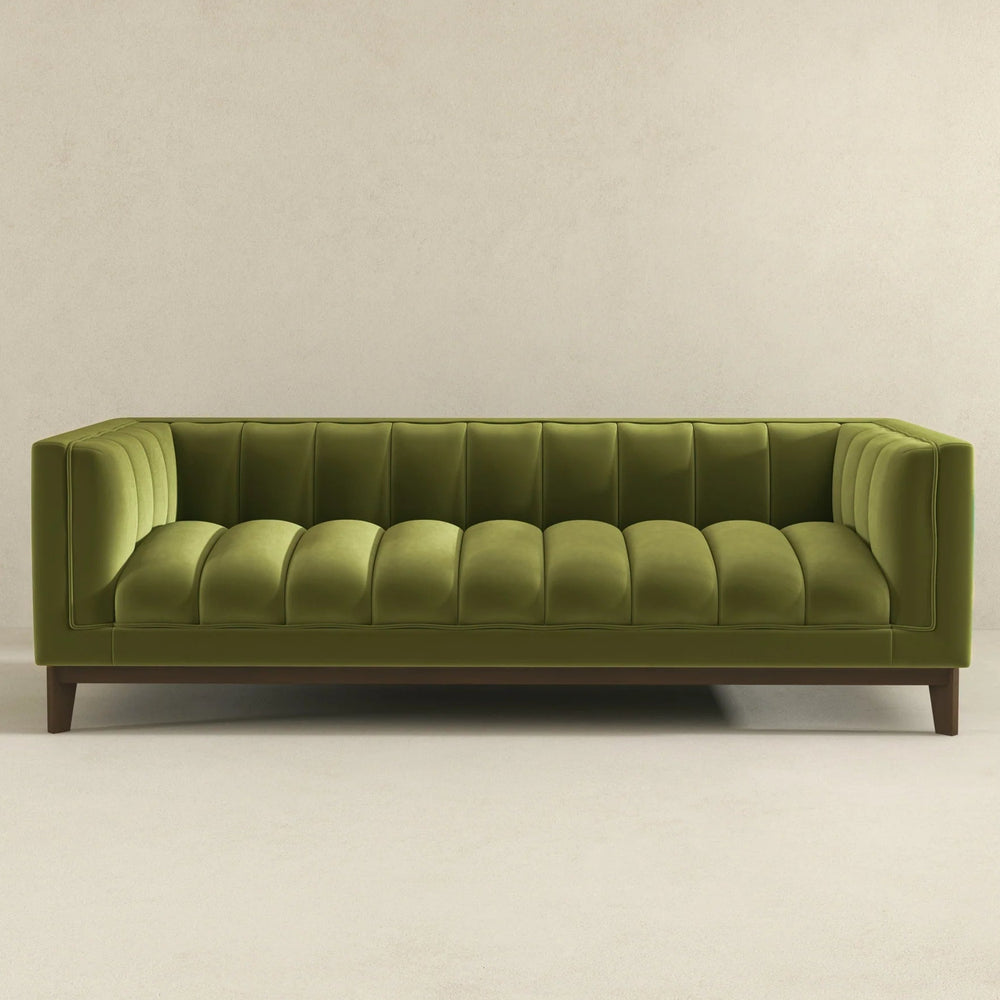 April Mid Century Modern Luxury Tight Back Tan Leather Couch