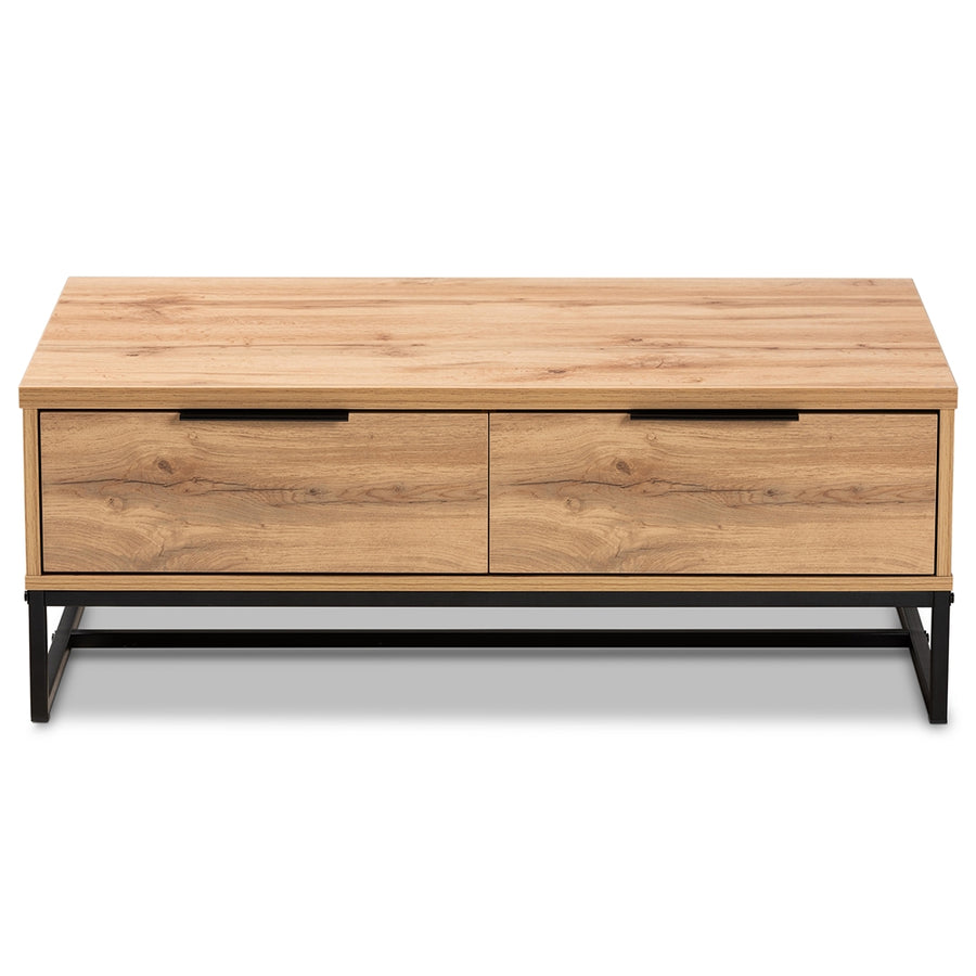 Franklin Brown Oak and Metal 2-Drawer Coffee Table