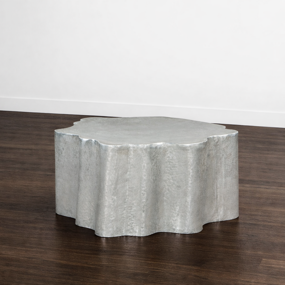 Crafted from durable powder-coated aluminum in a refined antique silver finish, this sculptural piece blends strength with sleek contemporary design. Its wide circular top and low profile create a grounded presence, perfect for modern living spaces. Fully assembled and ready to place, the Kortha offers effortless style with lasting durability.